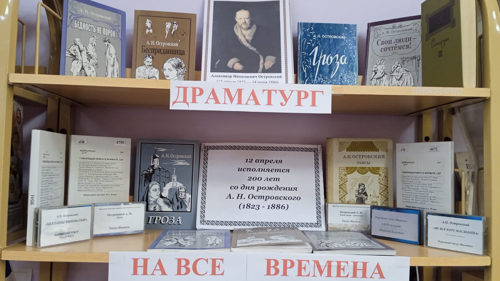 К юбилею великого драматурга на городском абонементе библиотеки и в 25 библиотечных пунктах открылась областная передвижная книжная выставка «Драматург на все времена», посвященная 200-летию со дня рождения А. Н. Островского.