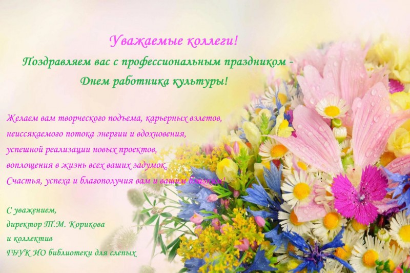 От всей души поздравляем вас с Днём работника культуры! Этот праздник — прекрасная возможность выразить признательность каждому из вас за ваш труд, талант и преданность искусству.